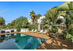 Perched above Talamanca Bay, this stunning modern villa blends luxury with unbeatable convenience. Just steps from Ibiza’s beaches, marina, and vibrant nightlife, it offers breathtaking views of the bay, Dalt Villa, and Formentera. Inside, the spacious layout includes a master suite, multiple en-suite bedrooms with terraces, and elegant living areas opening to expansive sea-view terraces. Outdoors, guests can relax by the pool, dine alfresco with the BBQ, or lounge while soaking in the scenery. With high-end amenities, daily cleaning, and serene privacy, it’s the perfect balance of retreat and proximity to Ibiza’s lively heart.