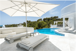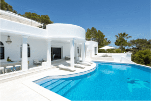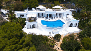 This spectacular 5-bedroom, 7-bathroom property boasts a striking white architecture, expansive sun terraces, and a stunning infinity pool that blends seamlessly with the Mediterranean horizon. The interiors are elegantly styled, offering spacious lounges, refined dining areas, and serene bedrooms with en-suite bathrooms. Perfectly located near Cala Jondal’s exclusive beach clubs, it’s the ultimate destination for those seeking privacy, glamour, and Ibiza’s vibrant coastal lifestyle.