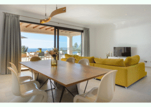 / Villas / Por Cvaz Welcome to 402 Villa with Panoramic Views and Private Pool Exclusive villa in San Antonio with breathtaking sunsets. Features 4 bedrooms, 4 bathrooms, 2 kitchens, a bright living room, and an independent studio. Enjoy a private pool, barbecue area, and the perfect setting to create unforgettable moments. Gallery All photosInteriorExteriorFavourites View More