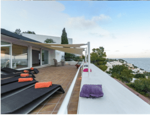 Located in one of the island’s most exclusive and quiet residential areas, next to Ibiza’s only golf course. Surrounded by pine forests with panoramic sea views, the villa accommodates up to 8 people with 4 double bedrooms. Just 15 min from Ibiza Town, 20 min from the airport, and 8 min from Cala Llonga.