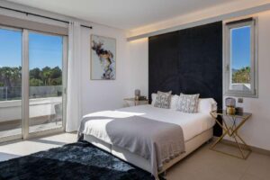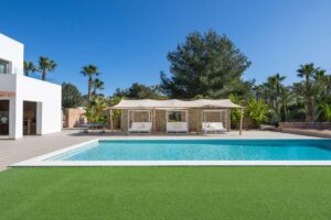 The interiors are modern and minimal, with a warm neutral palette and high-end finishes. Outside, enjoy the swimming pool, gym, BBQ, sun terrace, and even a mini club for children. Whether you’re dining al fresco or relaxing in the indoor lounge, Can Sinatra offers the perfect blend of comfort, space, and Ibiza lifestyle.