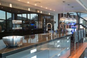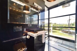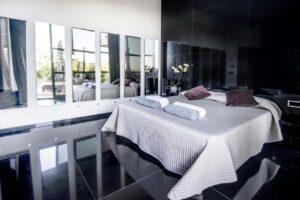 The villa’s sleek interiors embrace bold design and high-tech innovation, with dramatic dark tones, a striking all-black kitchen, and spacious bedrooms that redefine modern luxury. Perfectly positioned just minutes from Ibiza Town, Talamanca Beach, and Marina Botafoch, Villa Serra offers the ultimate blend of serenity, style, and proximity.