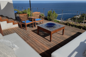 Features include a private pool, fully equipped kitchen, parking for three cars, and weekly cleaning service. Perfect for up to 10 guests seeking privacy, luxury, and stunning coastal scenery just minutes from Ibiza’s golf course.