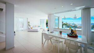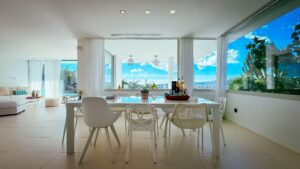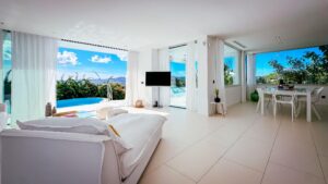 Set in one of Talamanca’s most exclusive hillsides, this minimalist luxury villa offers 360° panoramic views of the sea, Dalt Vila and the surrounding mountains. Bright, open spaces flow seamlessly to the exterior, featuring an infinity pool, multiple terraces and chill-out areas. The property includes 4 elegant ensuite bedrooms, two with freestanding bathtubs and private sunset terraces. The rooftop sky bar delivers unforgettable views at dusk. All just minutes from Marina Botafoch, top restaurants, Talamanca beach and Ibiza Town.